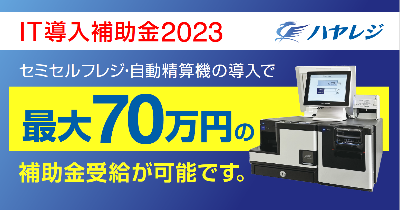 クリニック向けセミセルフレジ・自動精算機のハヤレジシリーズがIT導⼊補助⾦対象ツールに認定されました。