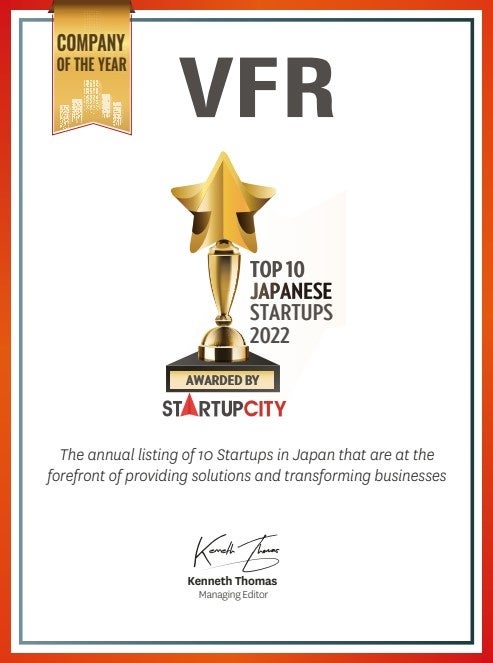 この度、VFR株式会社(本社:東京都渋谷区 代表取締役社長:湯浅 浩一郎、以下、当社)は、アメリカ・サンフランシスコで投資家・スタートアップ向けにメディアなどを通し知識連携ネットワークを提供するStartUp City 社によって”今 日本で勢いのある TECH 系スタートアップ企業” として 「 TOP 10 JAPANESE STARTUPS」 に選出されました。