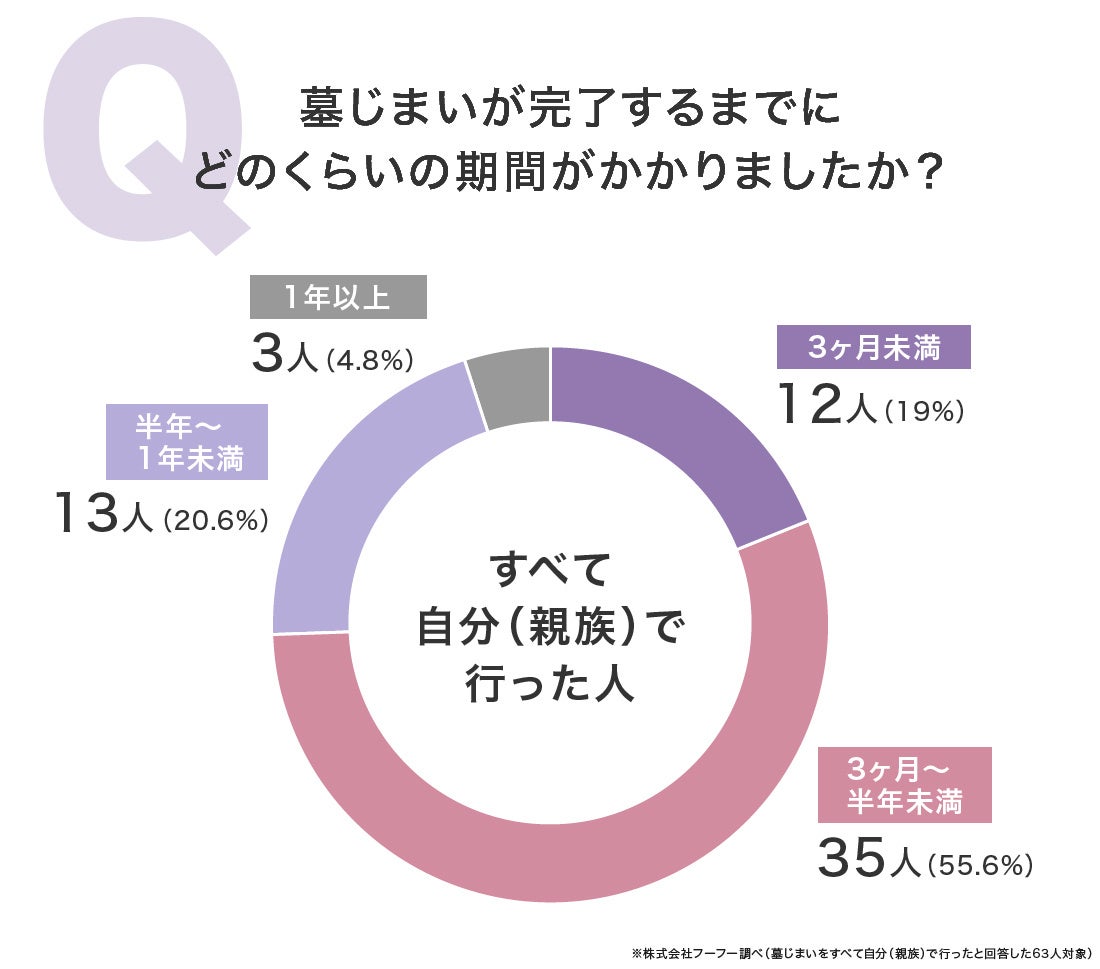 墓じまい完了までの期間は、進め方にかかわらず「3ヶ月〜半年未満」が最多でした。