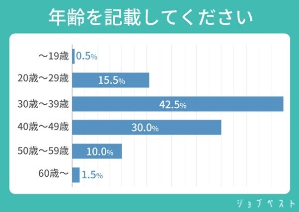 年齢についての質問では、42.5%の方が30歳~39歳の30代と回答しました。今回のアンケートの回答者は30代の方が最も多いという結果になっています。