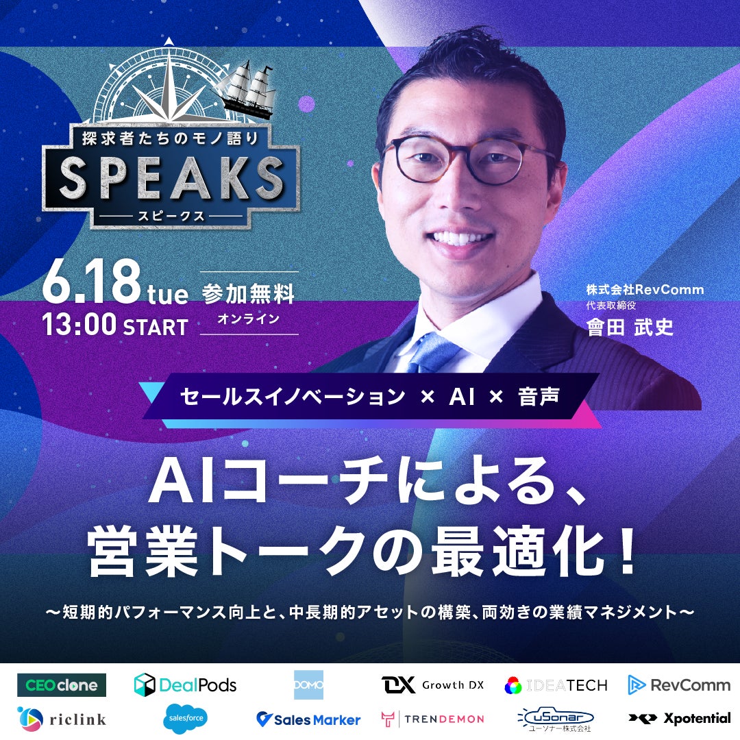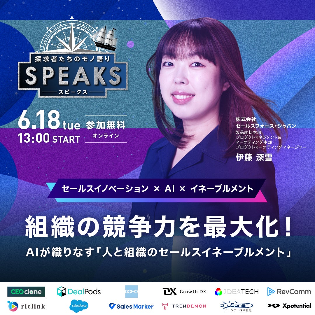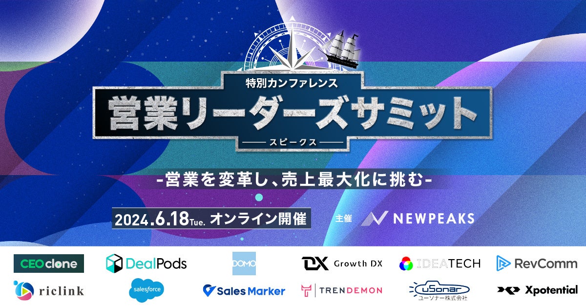 株式会社ニューピークス(NEWPEAKS.inc)は、番組型カンファレンス「SPEAKS -営業リーダーズサミット- 」を2024年6月18日(火)にオンラインで開催します。