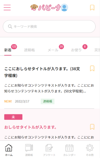 までは目を通してもらえないこともありえました。パピーナの保護者アプリでは、トップページに園からの情報が集約されているので、