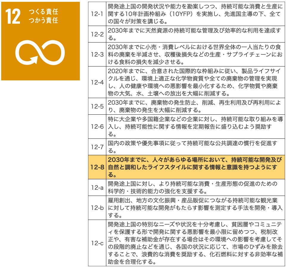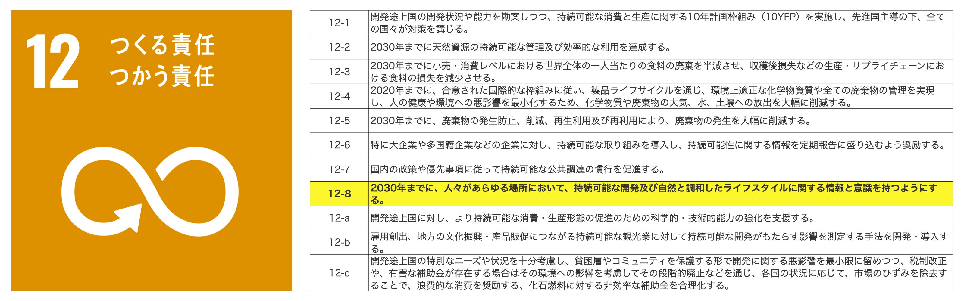 ターゲット12.8をきっかけに、重点テーマのゴール12に取り組みます。