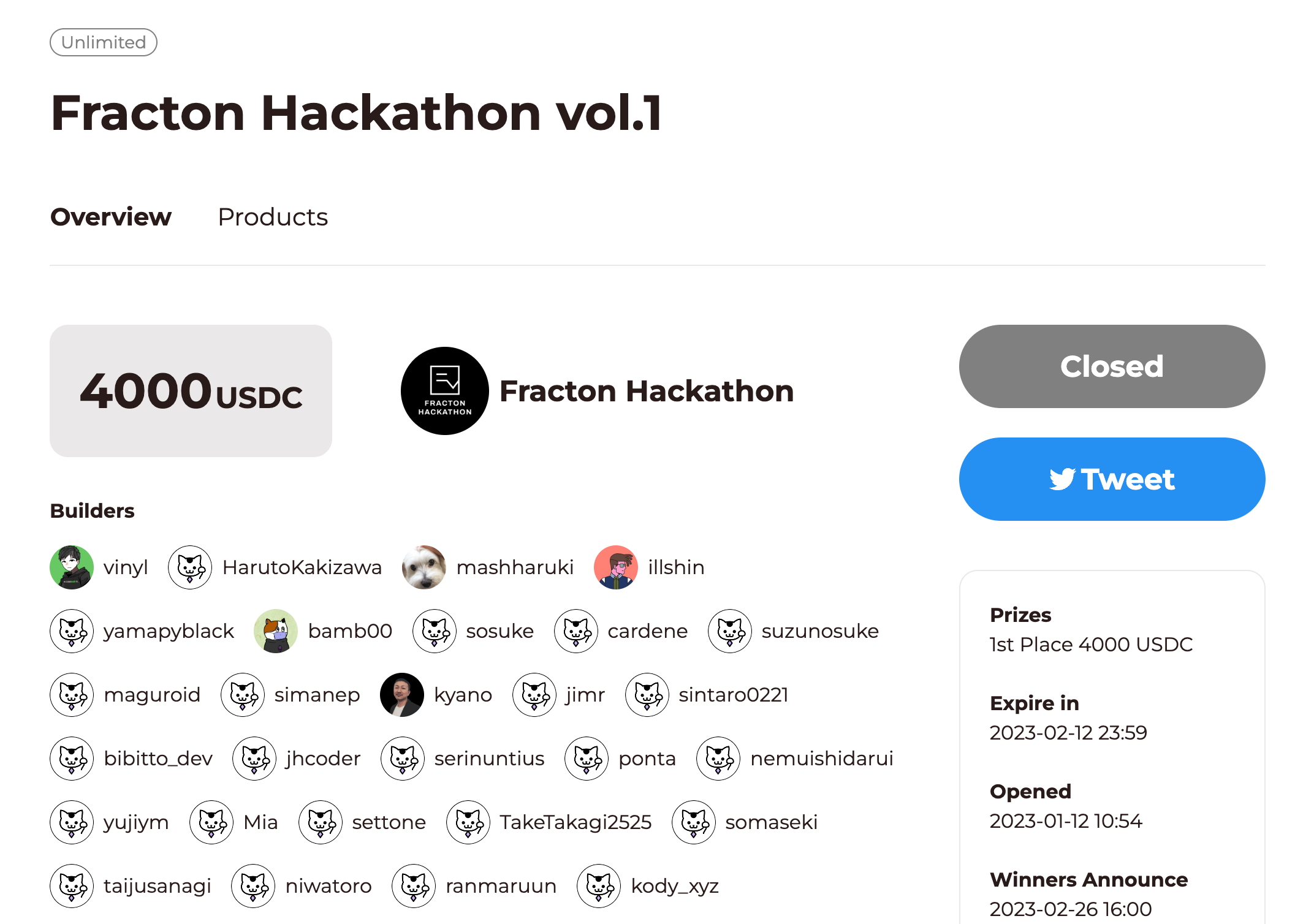 本パートナーシップの取り組みとして、2023年2月26日(月)にデモデイが行われたFracton Hackathon Vol.1( https://app.akindo.io/hackathons/Mz4K3lnRrCe2orqq )の参加者を対象に、Smart Contract Hubの使用方法等のアナウンスを行いサポートを開始いたします。