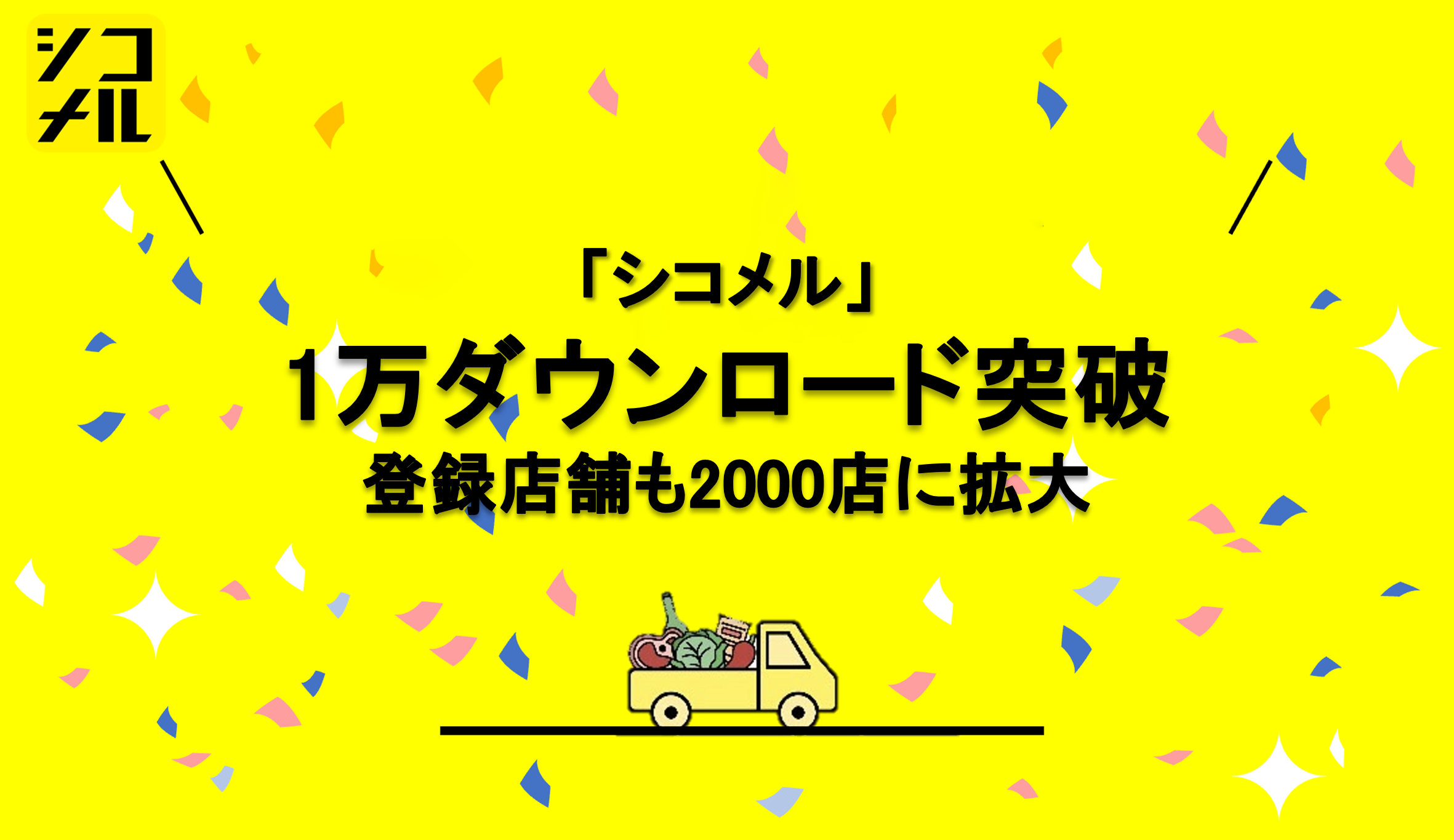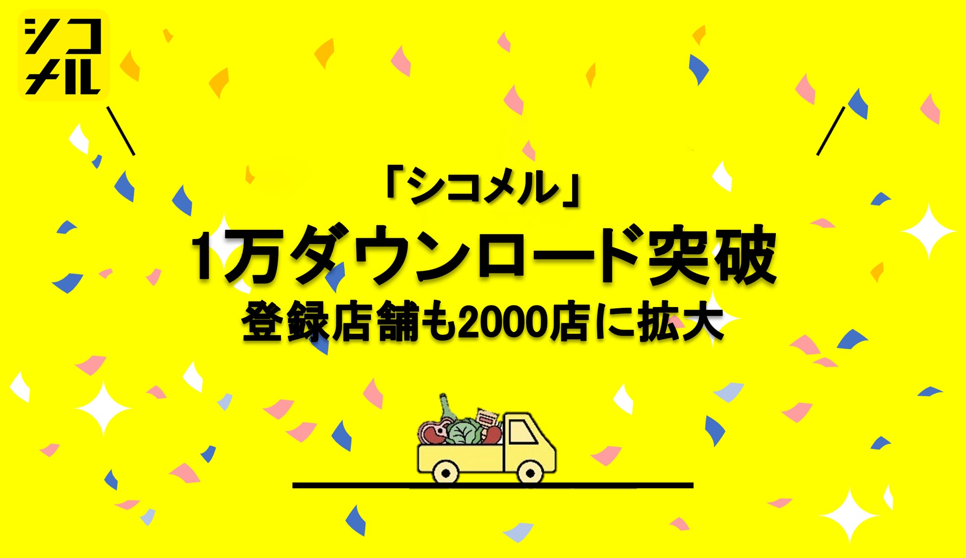 現在「シコメル」をご利用いただいているお客様はイートインやデリバリーを行う飲食店のみならず、研修施設や宿泊施設、レジャー施設など食事を提供される施設や企業にも広がっています。サービス開始から約1年7ヶ月で「シコメル」のアプリダウンロード数が累計1万を突破し、登録店舗も累計2,000店以上に拡大しました。