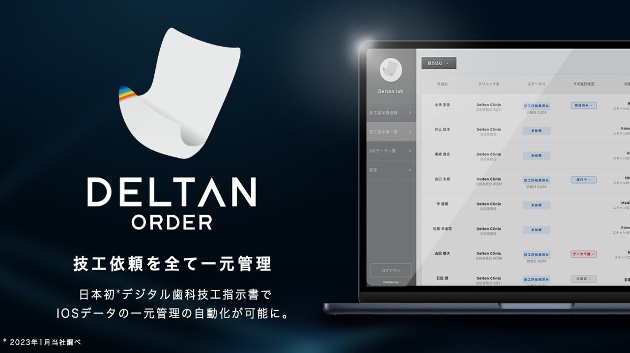 Deltan株式会社(本社:東京都品川区、代表:井上 佳洋)は、2024年3月13日、歯科デジタル技工データ自動一元管理システム「DELTAN ORDER(デルタンオーダー)」の正式版をリリースいたしました。