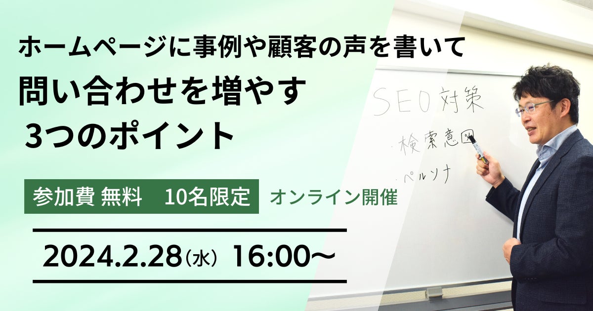 ▼「ホームページに事例や顧客の声を書いて問い合わせを増やす3つのポイント(無料オンラインセミナー)」
