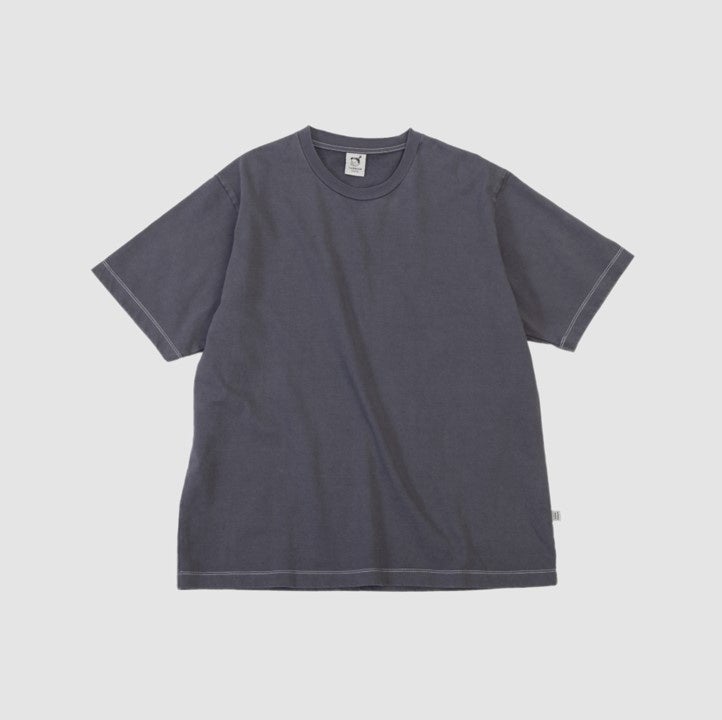 「STANDARD TEE」をベースに製品染めを行った一着。新たな試みとして、「ガーメントダイ製法(製品染め)」を行っています。出来上がったTシャツを後から着色、後染めすることにより縮みを防ぎ、型崩れも起きづらいのが特徴です。程よいヴィンテージ感でデニムやカーゴパンツにも合わせやすいような色合いに仕上げ、経年変化を楽しめるTシャツとなっています。