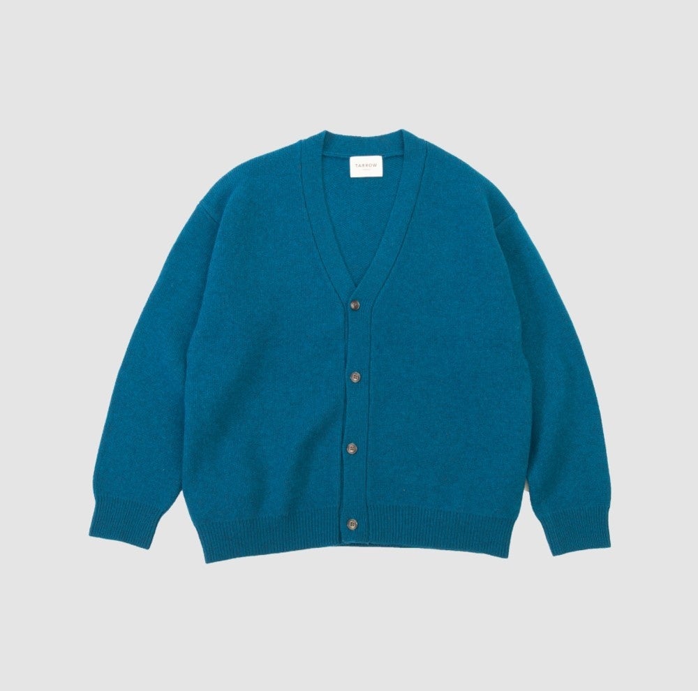 WOOL KNIT POと同じ素材を使用したベーシックなカーディガンです。衿のリブは太めにし、裾にはポケットをあしらいました。ややゆとり感がありつつも、ルーズな印象を与えないためシーンを選ばずに着ていただけます。