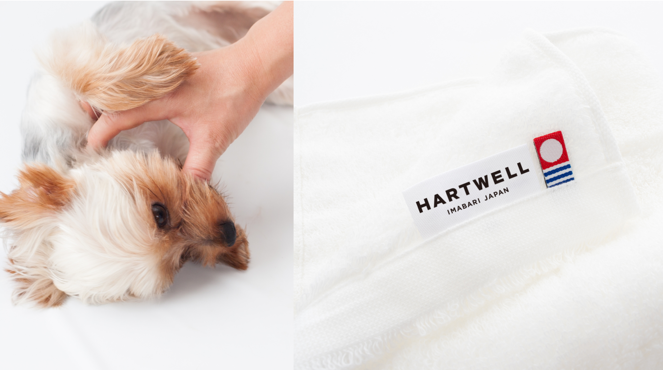 ブランド名は、Hartwell Dog - ハートウエルドッグ。良質な今治産のタオル生地を使用し、愛犬との各種生活シーンを想定したリラクゼーション商品を展開していきます。