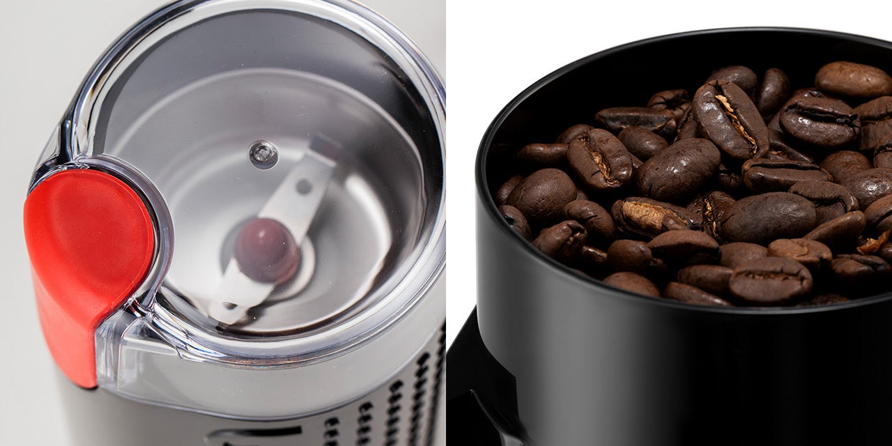 ・ すっきりとコンパクトなデザインが魅力のブレードコーヒーグラインダー。(最大容量60g)