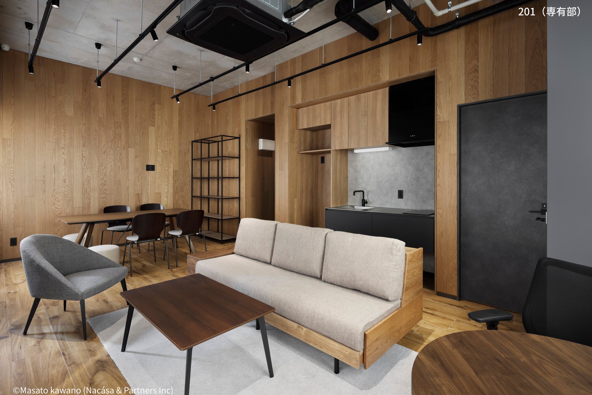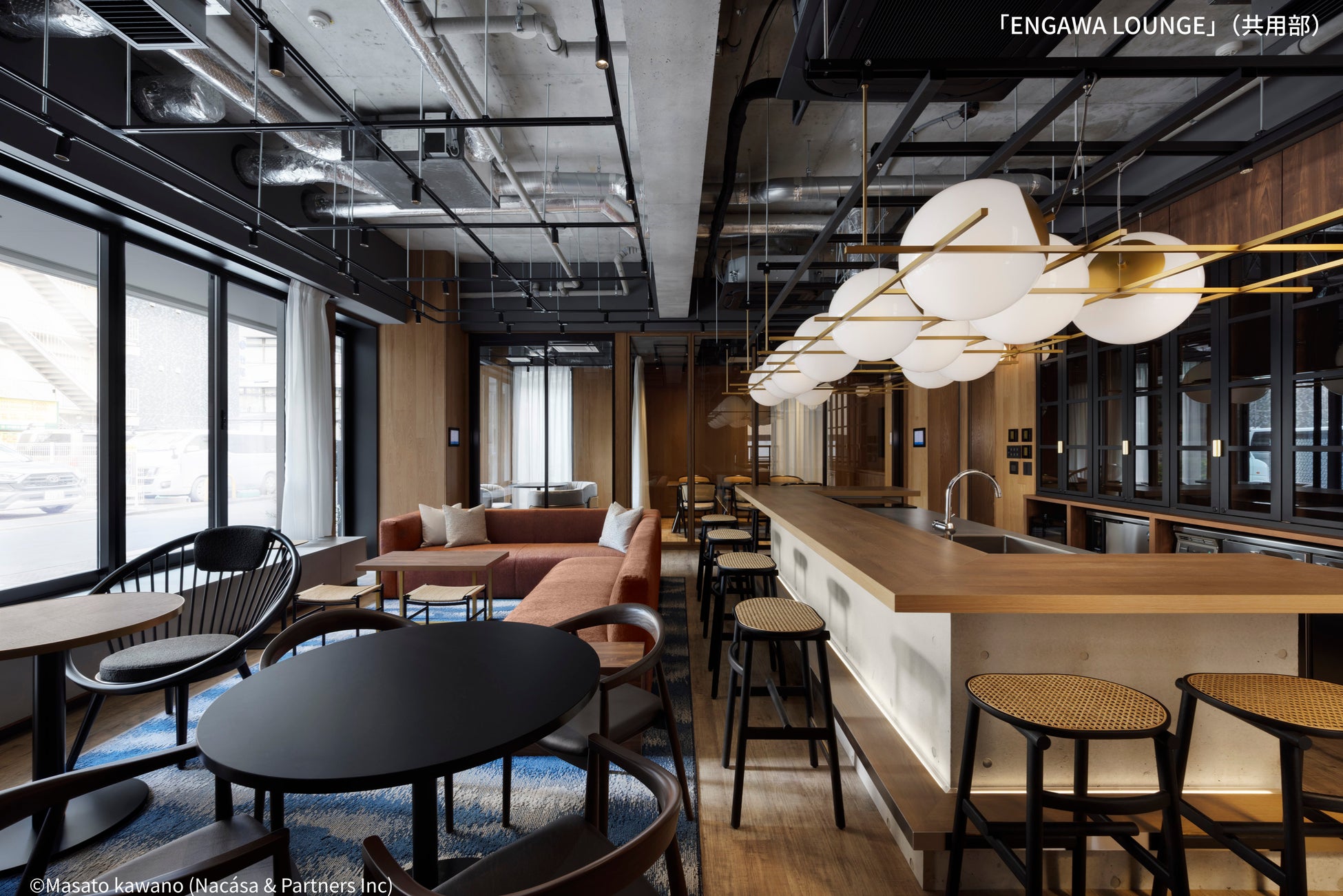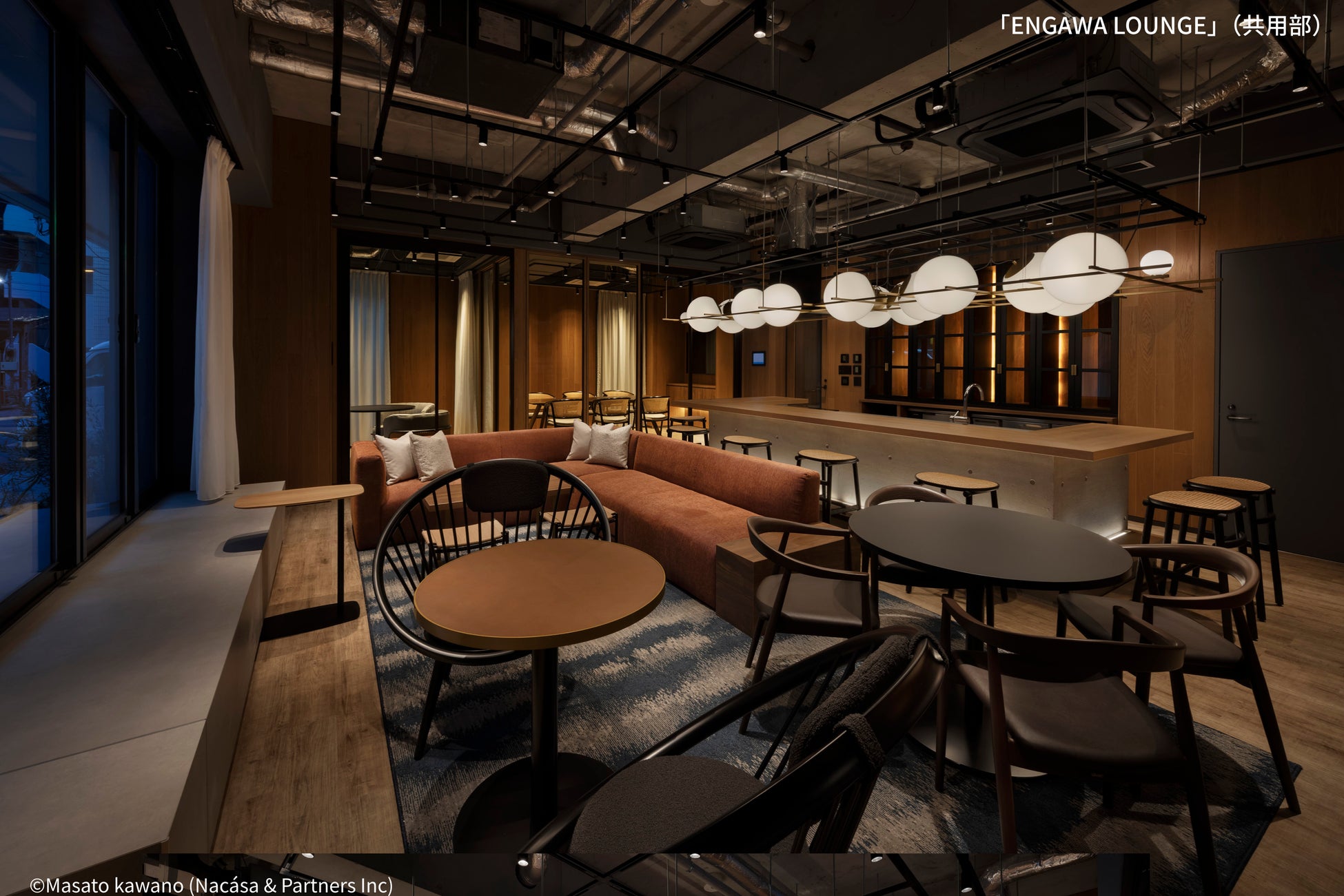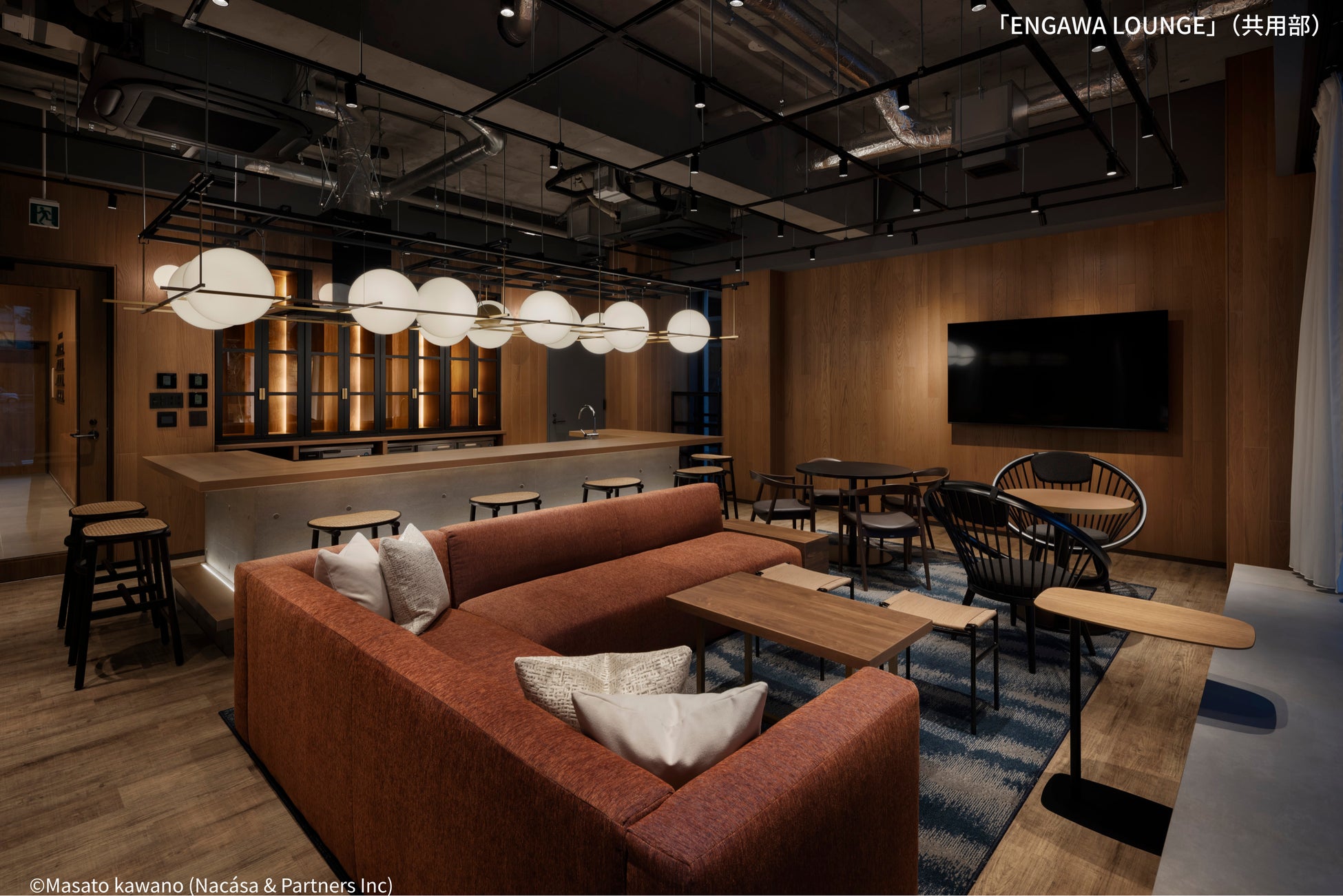 本プロジェクトでは、建物全体に天井高のある開放的な空間を確保。さらに、共用部には温かみのある素材やモダンな家具を採用することで、リビングやホテルラウンジのような心地よさと、洗練されたデザインを感じられる設えとしました。