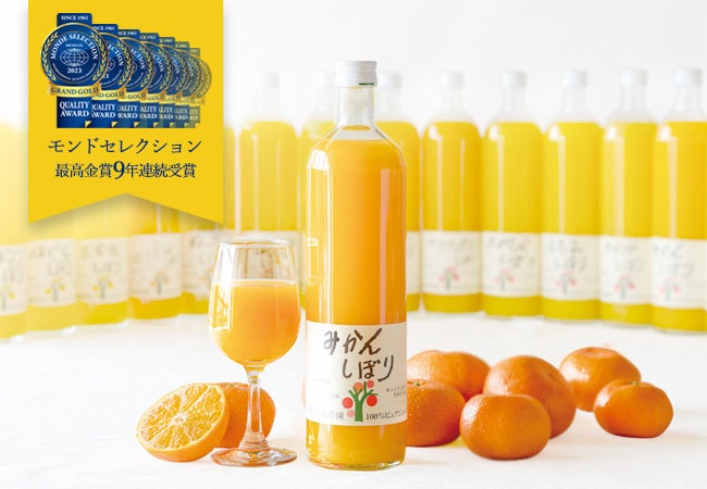 『100%ピュアジュース』のうち、みかんしぼりは、最高金賞を9年連続受賞 金賞含めると15年連続。