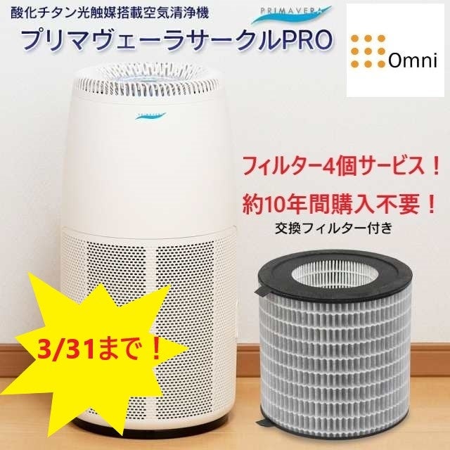 オミクロン・コロナウイルス対策として!光触媒搭載空気清浄機「プリマヴェーラサークルPRO」が今だけ、「特別価格」&「HEPAフィルター10年分プレゼント」の大セール!更に除菌グッズもプレゼント中!お得なキャンペーンを新たに実施致します!