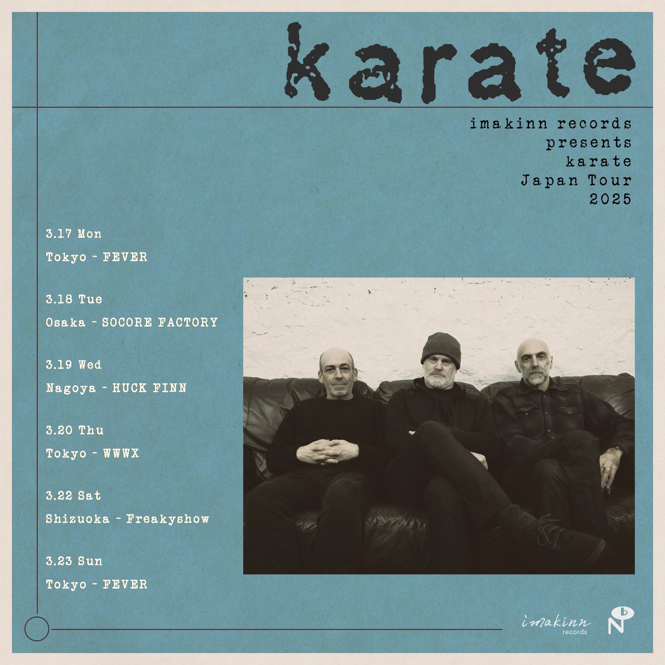 1993年US/ボストンにて結成、2022年には待望の再結成を果たした伝説の3人組『karate』が2004年以来の再来日にあたり、ジャパンツアーの詳細更新!