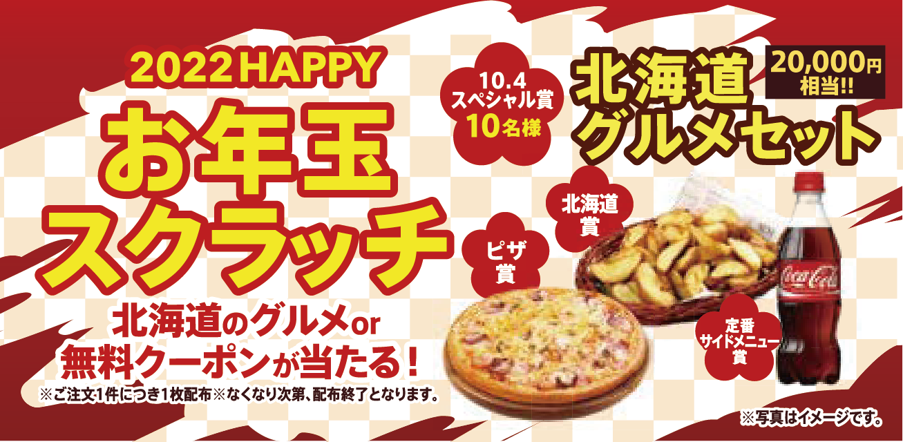 北海道発!宅配ピザ「テン.フォー」を運営する株式会社テンフォー (本社・北海道函館市/代表・髙橋仁志)は、2022年1月1日(土)~3日(月)までの3日間、「新春ピザ福袋」を数量限定で販売いたします。
