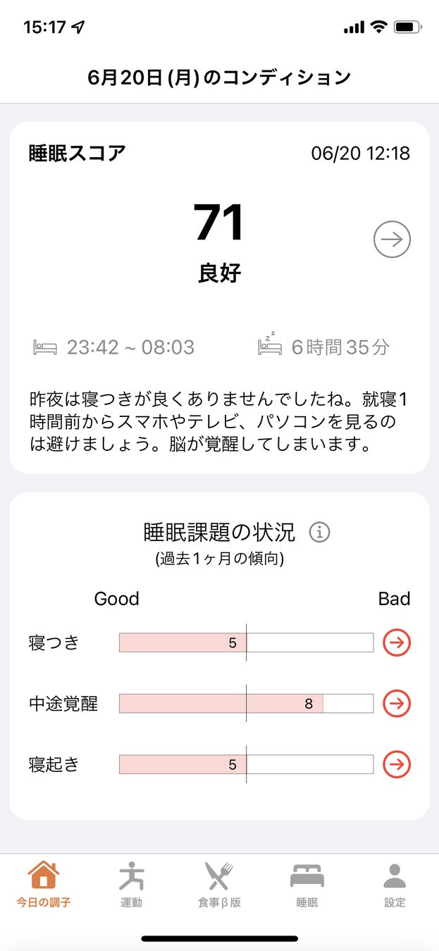 寝つき、中途覚醒、寝起きの課題スコアと分析コンテンツを追加しました https://apps.apple.com/jp/app/id1552624804