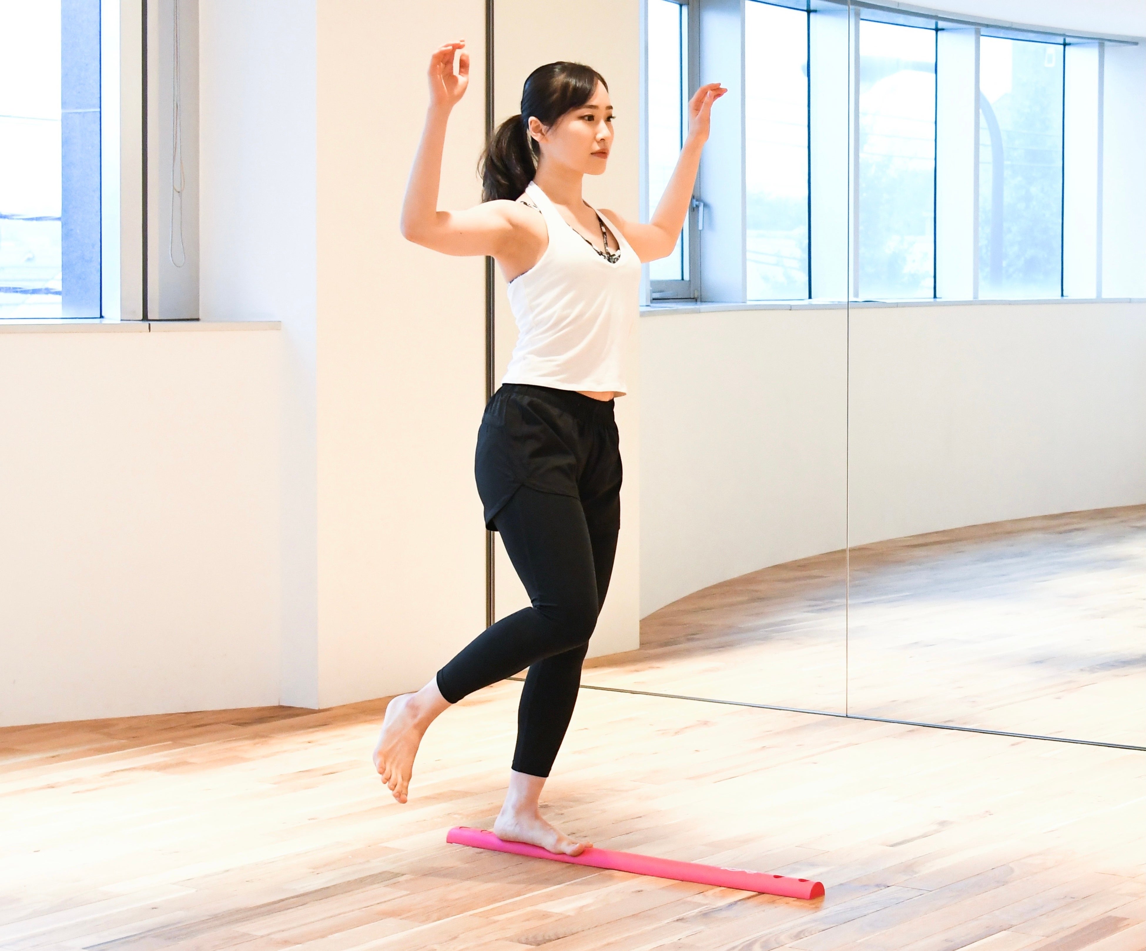 不安定で細いスラックレールの上に乗ることにより「軸」をキープするための体幹・バランスが効果的に鍛えられ「軸」を意識する集中力が必然的に身につきます。