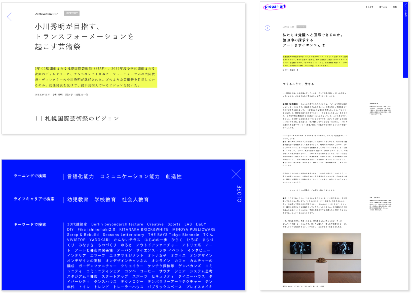 prepar.artでは、速報性の高いニュース記事より、じっくりと長い時間をかけて読むアーカイブ性のある記事を積極的に掲載していきます。特集では、ある特定のテーマについてアーカイブしていきます。