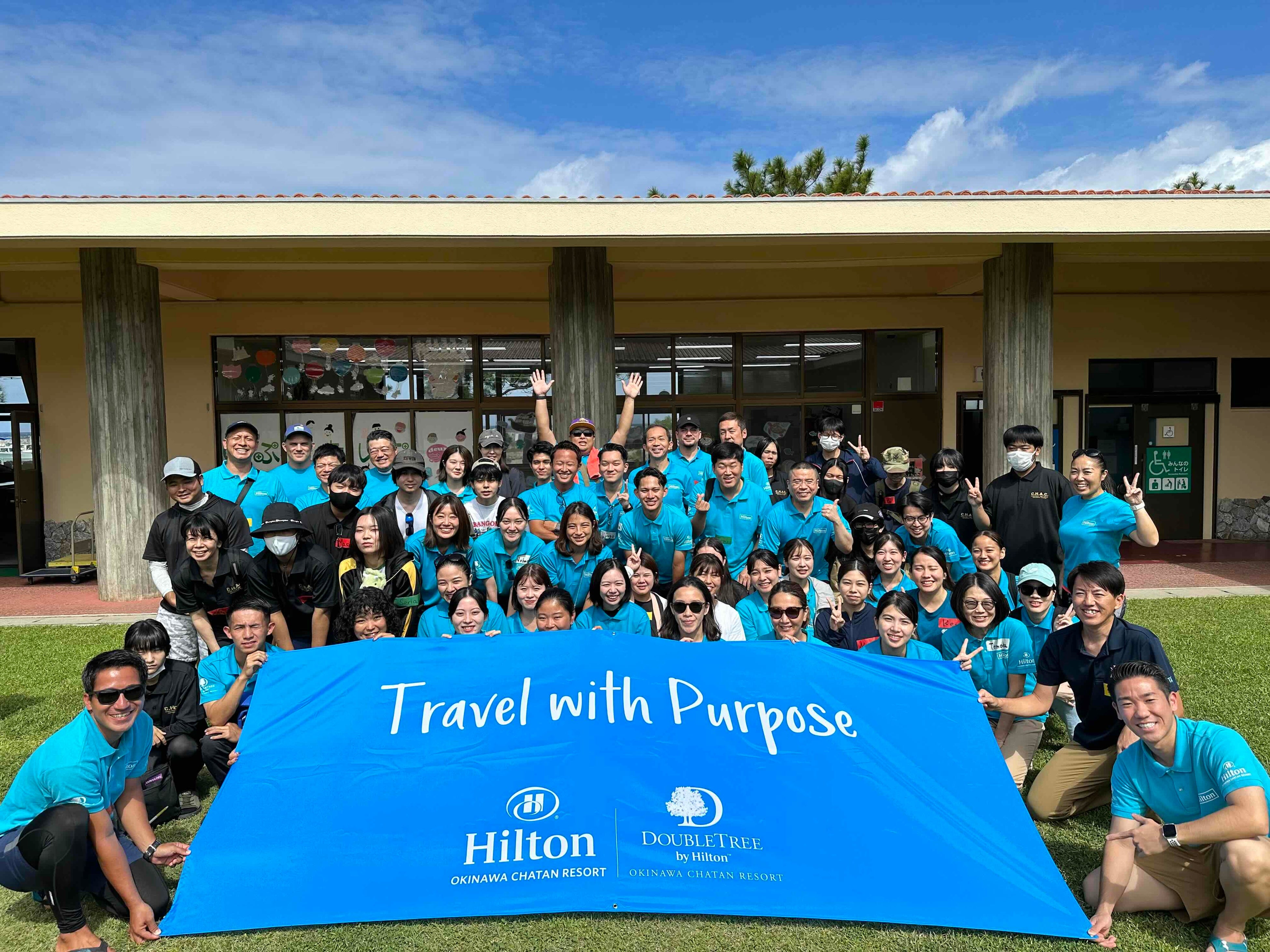 ヒルトンは日本に進出してから60周年を迎えました。今年は60周年記念も兼ねた「トラベル・ウィズ・パーパス・ウィーク (ボランティア週間)」の地域社会貢献活動として、ヒルトン沖縄北谷リゾート並びにダブルツリーbyヒルトン沖縄北谷リゾートのチームメンバー(従業員)と沖縄県内の高校生・大学生を含む60名が参加し、サンゴを守ろうプロジェクトを実施しました。減少しつつあるサンゴを増やす為サンゴの苗づくりを60本、サンゴの白化の大きな原因である赤土流失への対策としてイジュの木の植樹を60本行い、楽しく学びのある、そして意義のある活動を行いました。