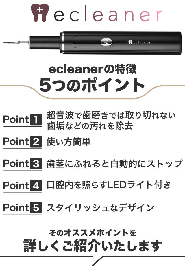 「ecleaner」は、次回の歯科検診まで歯をきれいな状態に保ちたい方や、自宅でのケアを増やしたい方に特におすすめです。