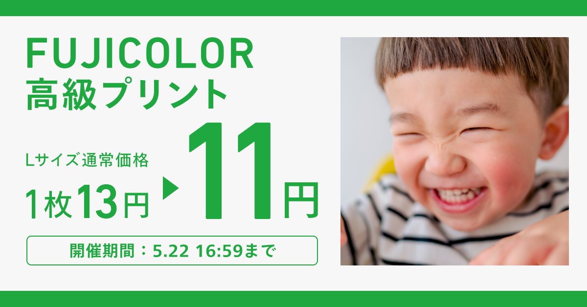 ■キャンペーン内容:通常1枚13円の「FUJICOLOR高級プリント Lサイズ」が、1枚11円にてご注文いただけます。