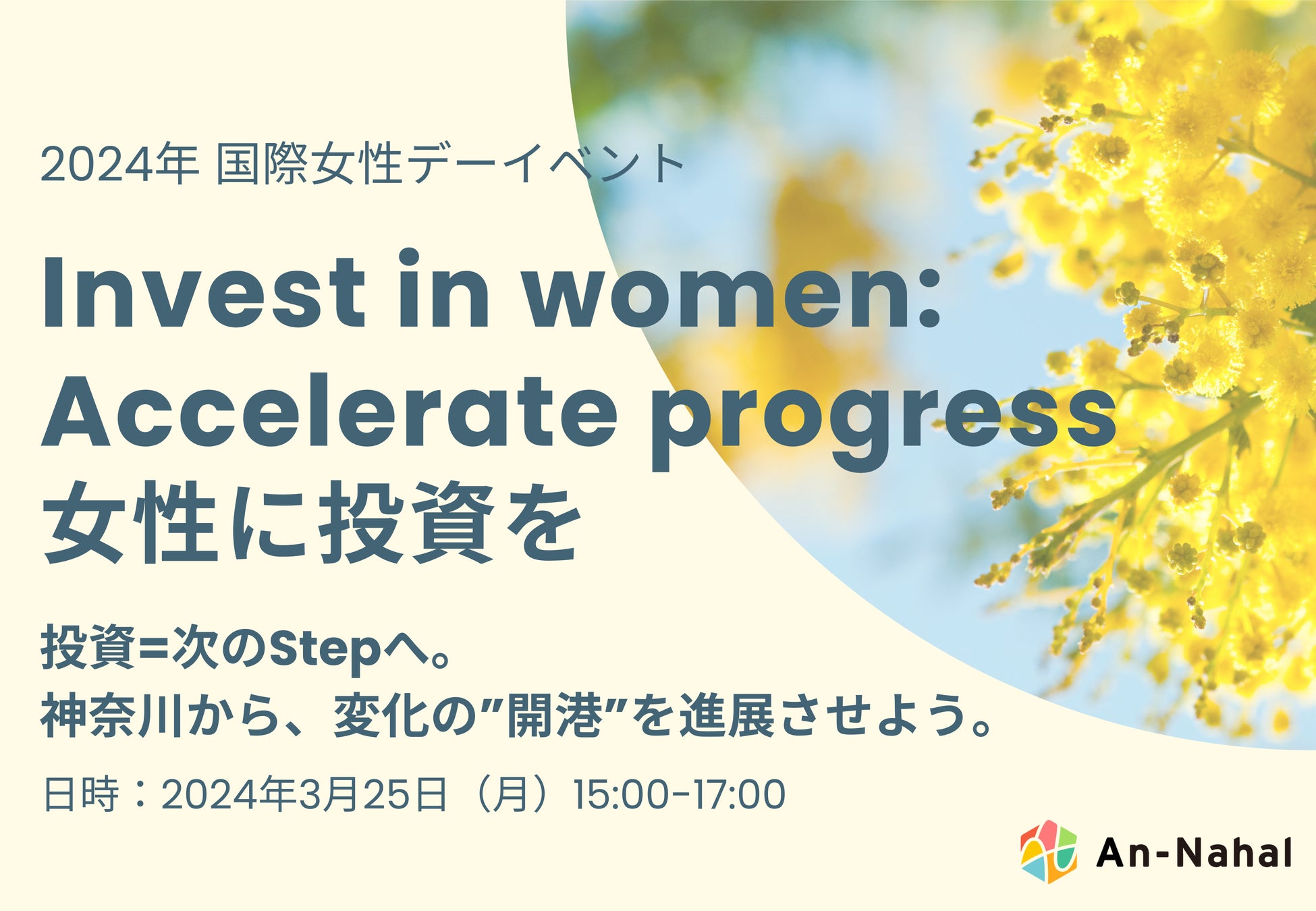 Invest in women: Accelerate progress 女性に投資を 投資=次のStepへ。神奈川・横浜から、変化の”開港”を進展させよう。