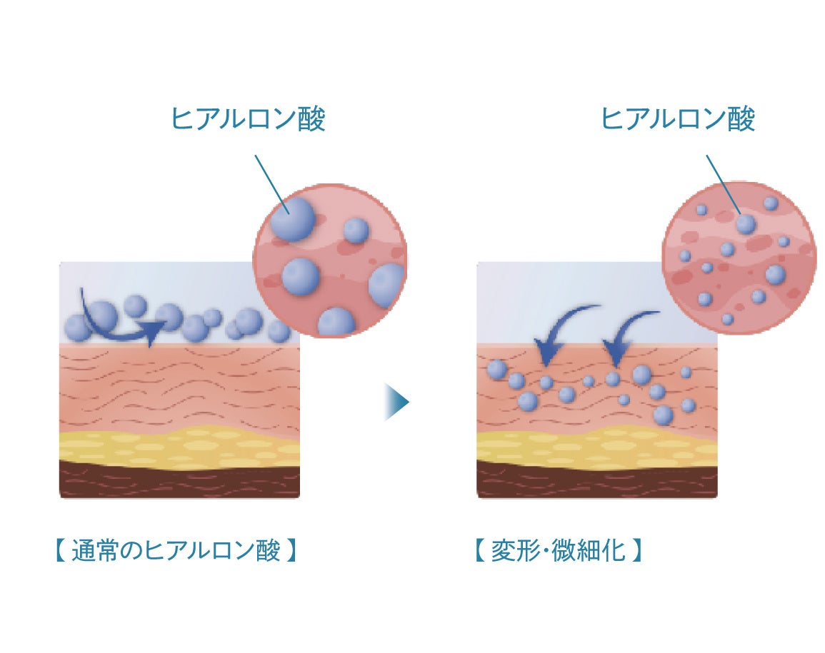 ヒアルロン酸ならではの高い保水力を保ちながら、角質層までの浸透を叶え、安定的に効果を発揮させることに成功。