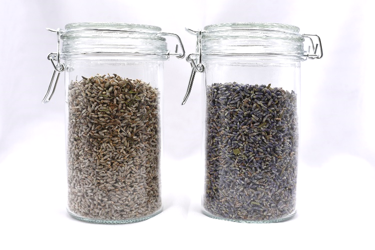 図1. 美郷雪華(左)と従来の紫ラベンダー(右)の乾燥素材