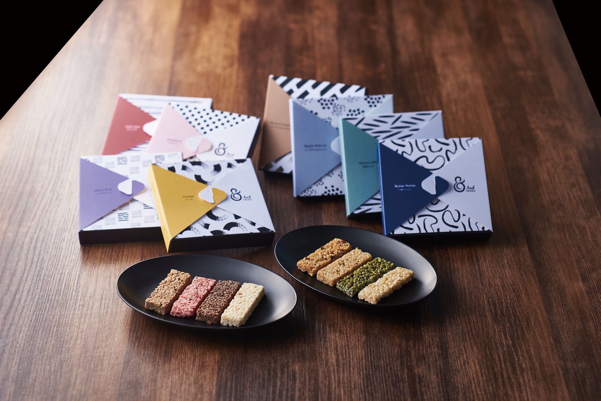 日本の伝統的なおこしの製法と、西洋で愛されるフレーバーが出会って誕生しました。水あめをつなぎに使用した、昔ながらのオーソドックスな製法で作られた「& ORIGIN」と、多彩な味わいと食感を”チョコレート”でまとめた「& NEO」の2つのカテゴリー(8種のフレーバー)を取り揃えています。