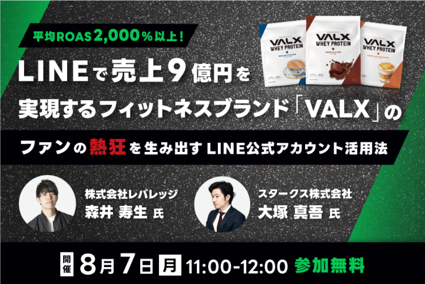 【8/7(月)開催】『平均ROAS 2,000%以上! LINEで売上9億円を実現するフィットネスブランド「VALX」のファンの熱狂を生み出す LINE公式アカウント活用法』
