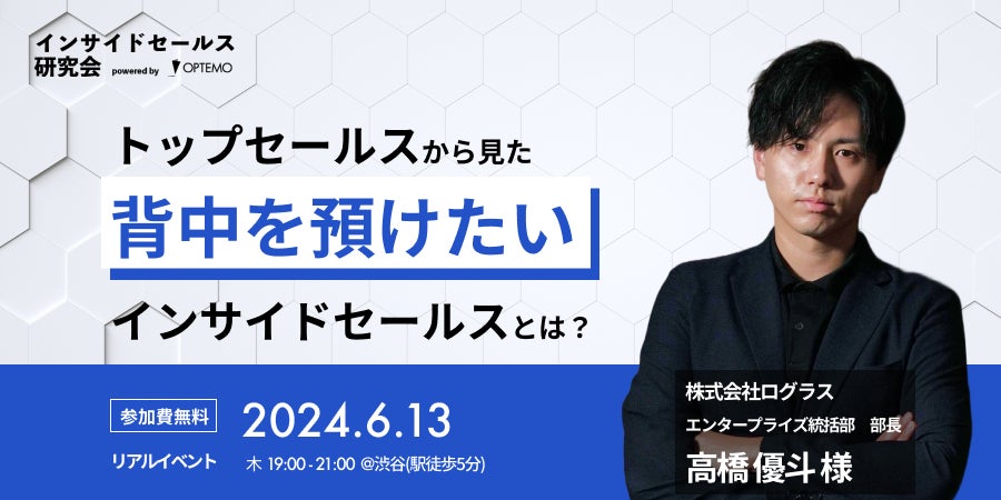 株式会社OPTEMO(本社:東京都千代田区、代表取締役:小池桃太郎、以下OPTEMO)は、2024年6月13日に「トップセールスから見た”背中を預けたい”インサイドセールスとは?」と題してインサイドセールス研究会6月例会を開催します。