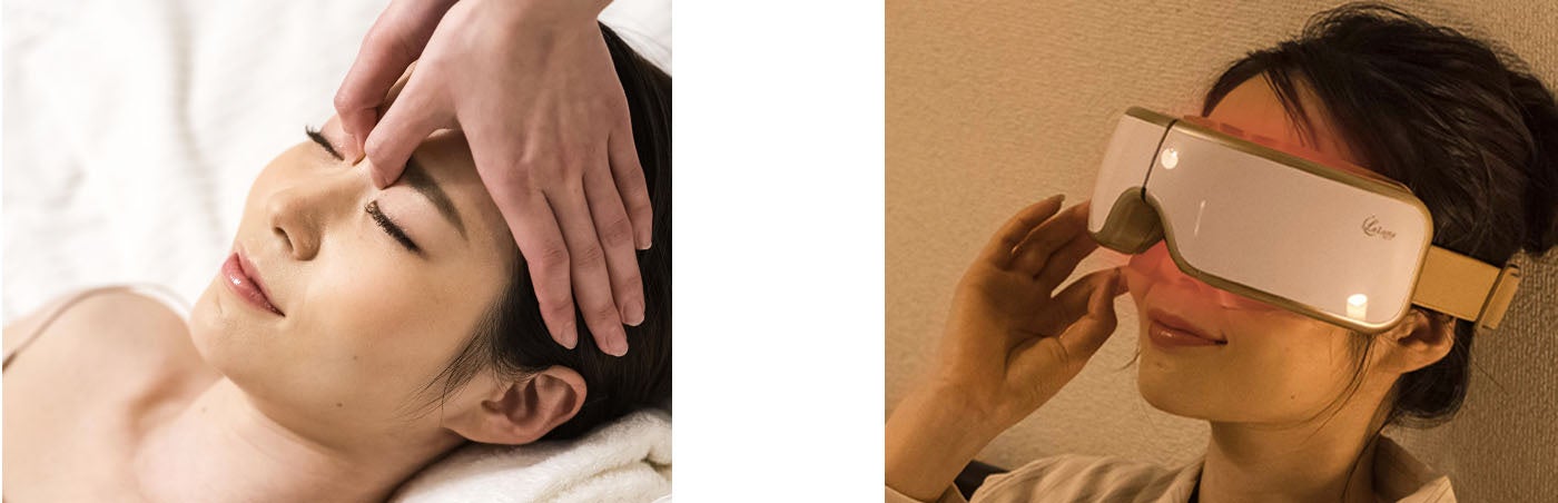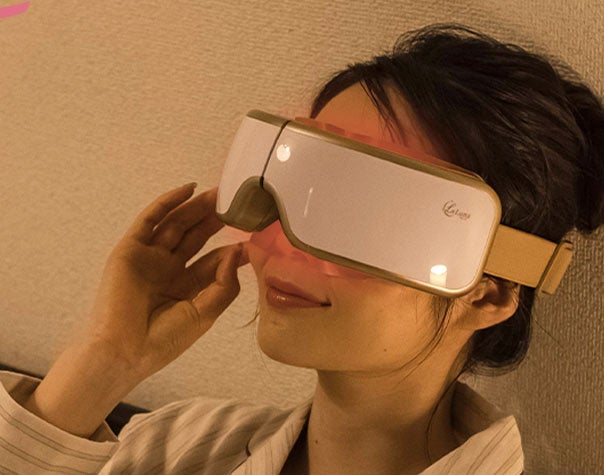 目元をじんわり温め、まるでエステティシャンの指先のような空気圧が目元からこめかみまでを優しく包み込みます。使用中に流れるヒーリング音楽は、カラーごとに異なる世界観のBGMを搭載しています。