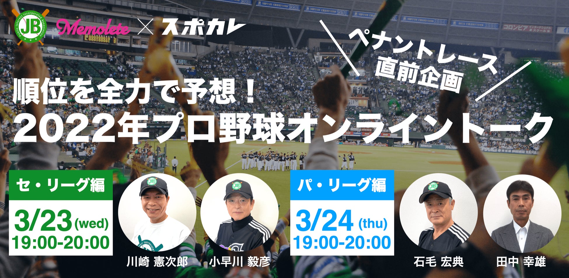 【ペナントレース直前!】日本プロ野球OBクラブ×Memolete×スポカレ 2022年プロ野球を全力予想するオンライントークイベントを共同開催!プロ野球OB選手とファンが双方向で交流する場をお届け