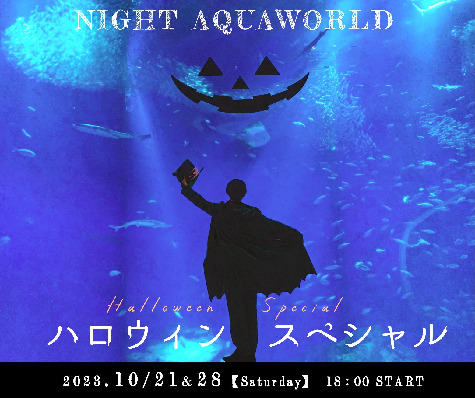 「サメの飼育種類数日本一」のアクアワールド茨城県大洗水族館では、“さぁ、新世海!”をコンセプトに掲げ、水族館の新たな一面をお客様にお見せするために様々な取り組みを行っております。ハロウィン目前の10月21日(土)と28日(土)に、夜の水族館でハロウィン気分が味わえる「NIGHT AQUAWORLDハロウィンスペシャル」を開催いたします。特設ページ:https://www.aquaworld-oarai.com/2023/09/21/hwsp/