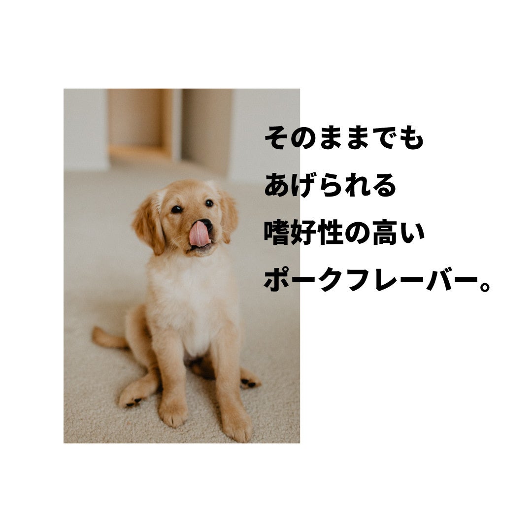 ②さまざまな香料の中で最も嗜好性の高かったブタ香料を使用。多くのワンちゃんが喜んで食べてくれる美味しいサプリメントです。