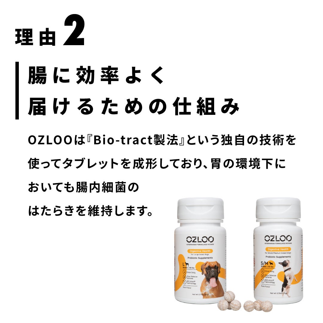 こだわりの菌と独自製法で愛犬の“腸活”を実感。犬用整腸剤「OZLOOプロバイオティックサプリメント」を日本で初めて発売開始。