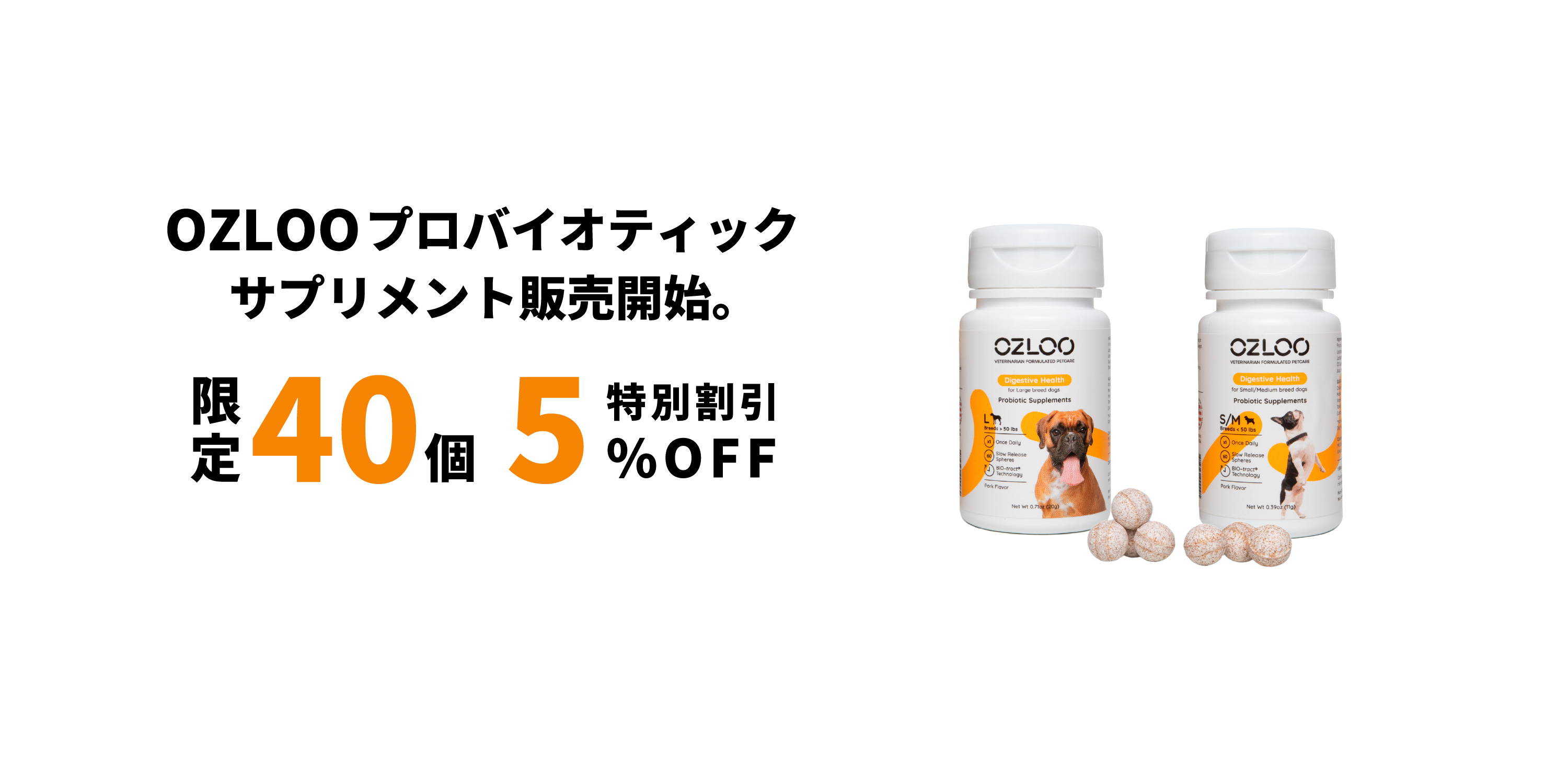 - OZLOOプロバイオティックサプリメント(犬用整腸剤)に関するキャンペーン