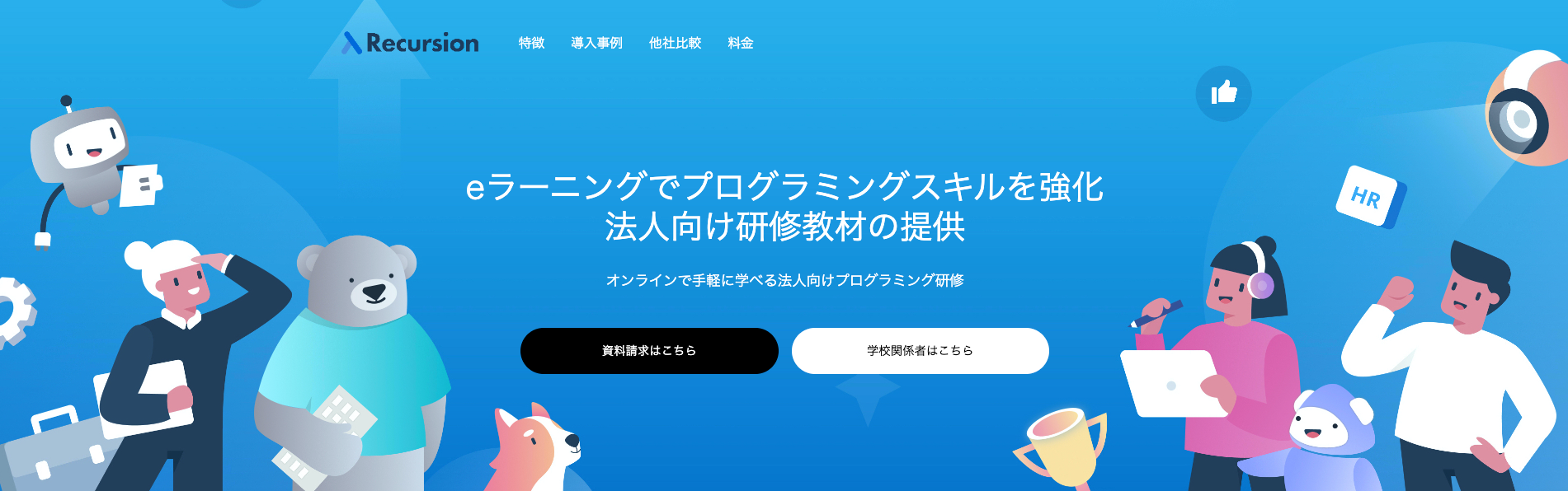 Recursionが提供する法人向けプログラミングeラーニングは、最新技術とユーザーフレンドリーなインターフェースを活用した独特な学習体験を提供します。