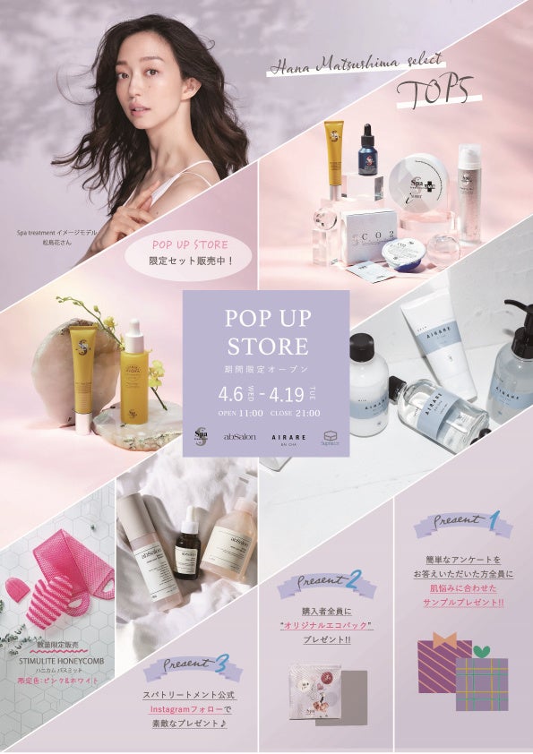 株式会社ウェーブコーポレーション(本社:大阪市中央区:代表取締役荒井裕一)は、2022年4月6日(水)~4月19日(火)まで、one×one新宿ミロード店1Fで、主要ブランドである「Spa treatment(スパトリートメント)」のPOPUP STOREを期間限定でOPENいたします。