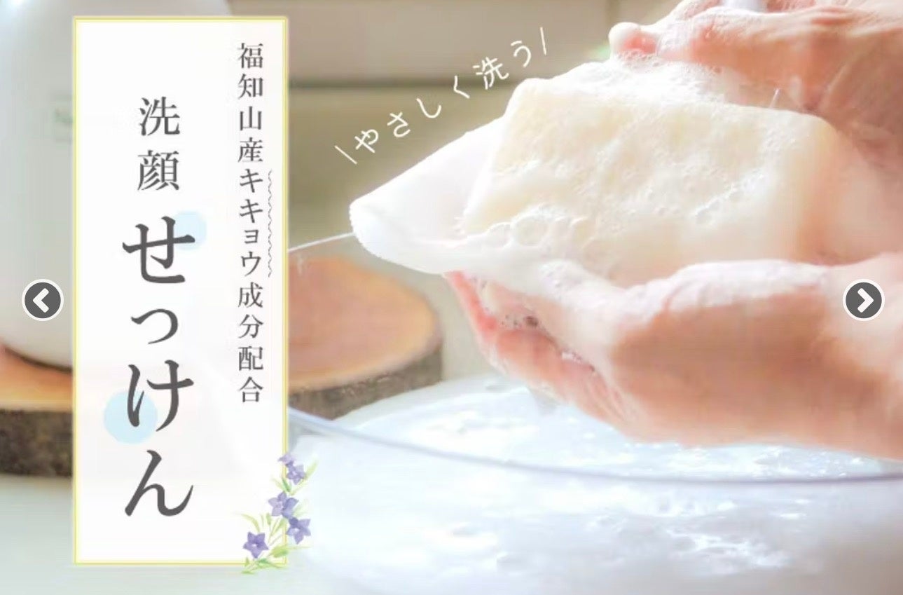 タイトル:福知山産キキョウ成分を活用した洗顔せっけんで、女性と子供の肌トラブルを解決したい