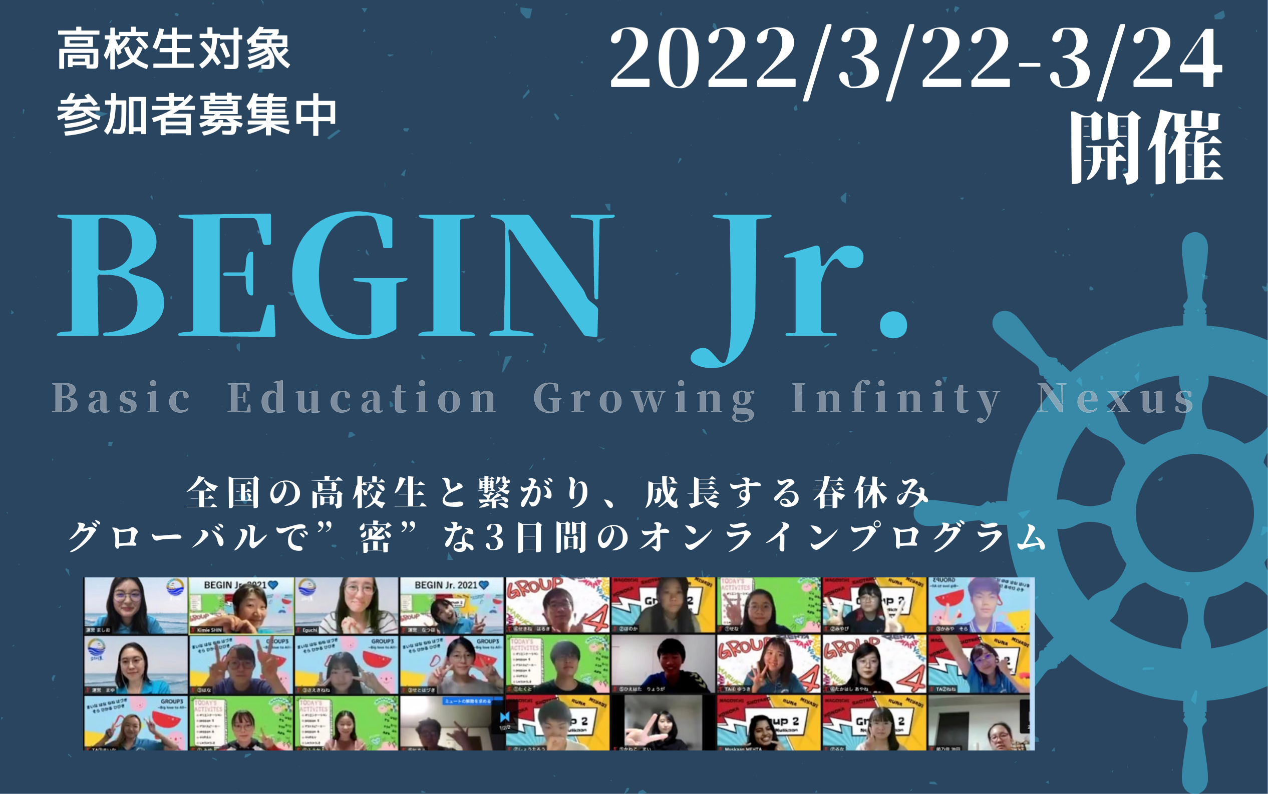 立命館アジア太平洋大学(APU・大分県別府市、学長:出口治明)は、昨年夏、申込数が募集人数を大幅に超えた、グローバルで”密”な人気のオンラインプログラム『BEGIN Jr. (ビギンジュニア)』を今春も、2022年3月22日(火)〜24日(木)の3日間で日本全国の新高校1年生から新3年生を対象に実施します。