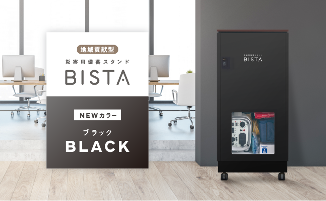 【防災&地域貢献】全国導入実績300台突破の「災害用備蓄スタンドBISTA」に待望の新色ブラックが登場!