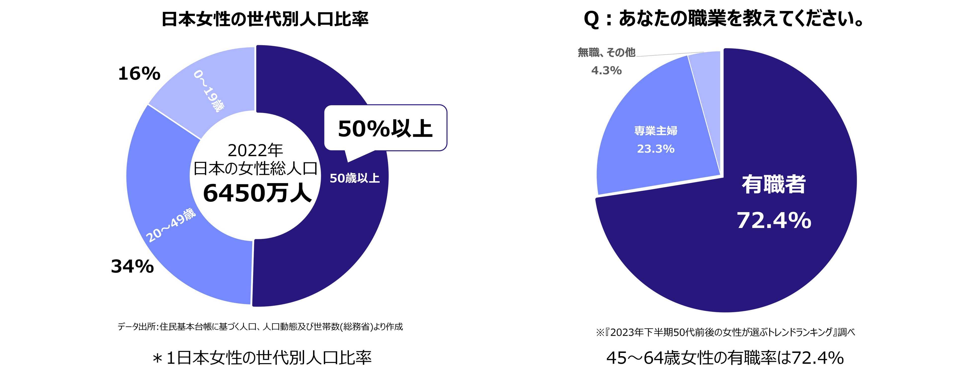 *1日本女性の人口のおおよそ50%以上を占める、50代前後(45歳~64歳)の女性への調査で明らかになったのは、子育て世代のみならず、この世代でも時短、手間抜き調理に関しては積極的に取り入れる傾向に。