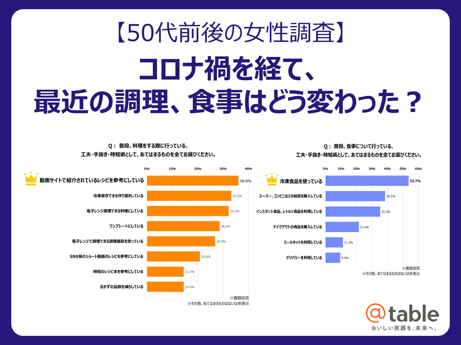 【50代前後の女性調査】コロナ禍を経て、最近の調理、食事はどう変わった?時短、手間抜きのための様々な工夫とは
