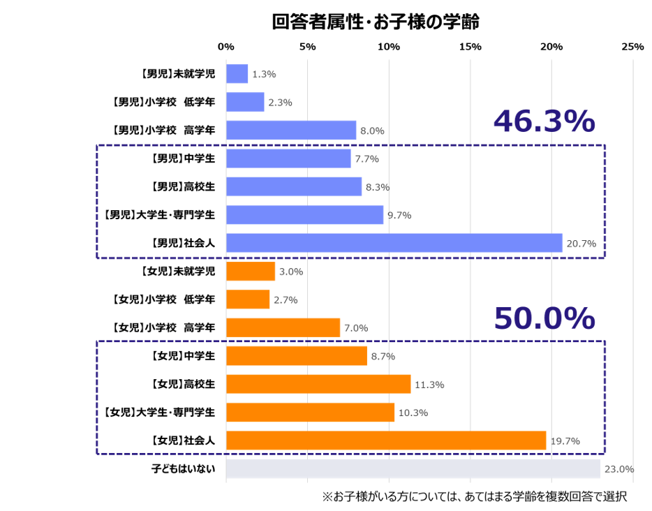 また時短や手間抜きの強い味方である電子レンジ調理も一般的となり、SNSで流れてくる時短動画レシピもほとんど電子レンジを使用したレシピとなっています。中学生~社会人のお子様がいる家庭も半数以上で、お子様の影響もありSNSなどを利用した時短術も浸透しているようです。