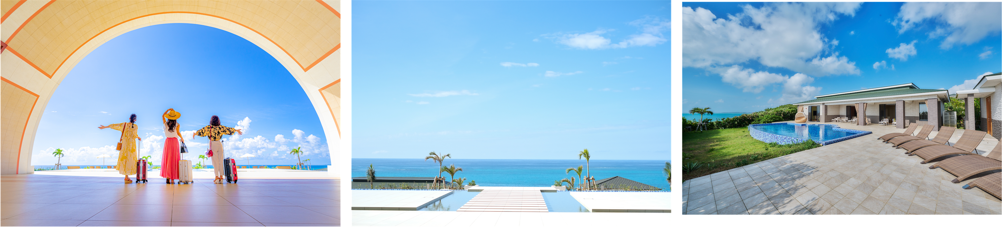 宮古島と来間大橋で繋がる離島、来間島に、 2020年2月オープン致しました。 約13万平方メートルの広大な敷地には、 客室にプライベートプールもしくはジャグジーを設置した107棟の『ビラハウス』、 62室のホテル棟『首里ハウス』、 フロント・和食レストラン・ショップ・ジムを備える『竜宮ハウス』、 メインプールと洋食レストランを備える『ビーチハウス』、 オールハンドトリートメントの『スパハウス』といった5つの“ハウス”を備える、まるで街(タウン)のような絶景リゾートです。印象的なアーチ型デザインの『竜宮ハウス』から見る宮古ブルーの大パノラマや、幻想的なサンセット、息を呑むほど美しい圧巻の星空など、様々な時間帯に見ることができる唯一無二の絶景が訪れるお客様を魅了しています。
