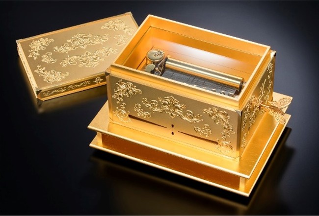 また、全体を金で包み、金工作家の確かな技術と豊かな感性で施された様々な文様と共に、音楽の世界も楽しめる特別な作品となっています。