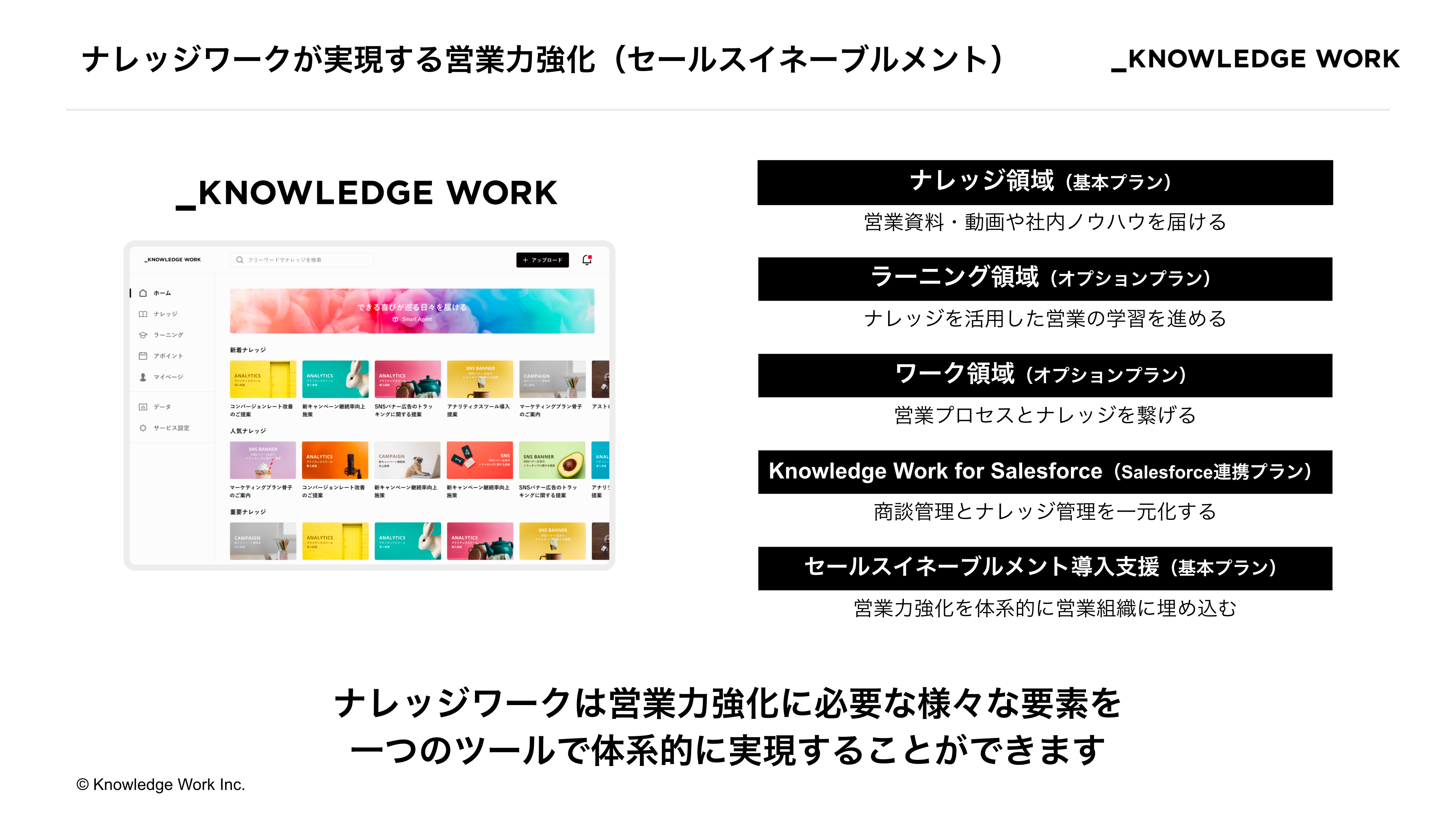 - 「ナレッジワーク」の概要:営業力強化や営業生産性向上を1つのツールで実現
