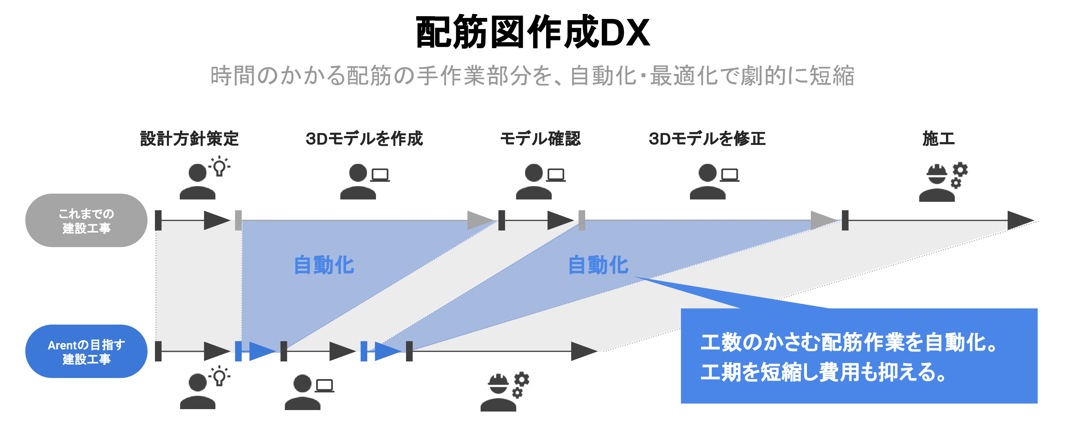 エンジニアによる高難度DXを推進するArent(本社:東京都中央区、代表取締役社長:鴨林 広軌、以下「当社」)は、この度、JR東日本スタートアップ株式会社(代表取締役社長:柴田裕)が主催し、JR東日本グループの抱える課題を提示、その課題解決に繋がる優れたアイディアや技術を持つスタートアップ企業を繋ぐ課題先行型マッチングイベント「STARTUP PITCH#3」において、「鉄道構造物BIMモデルでの自動配筋システムの構築」が採択されたことをお知らせいたします。